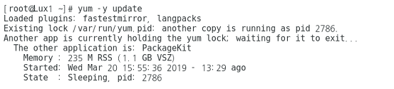 another app is currently holding the yum lock; waiting for it to exit..