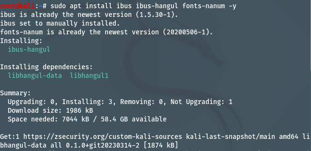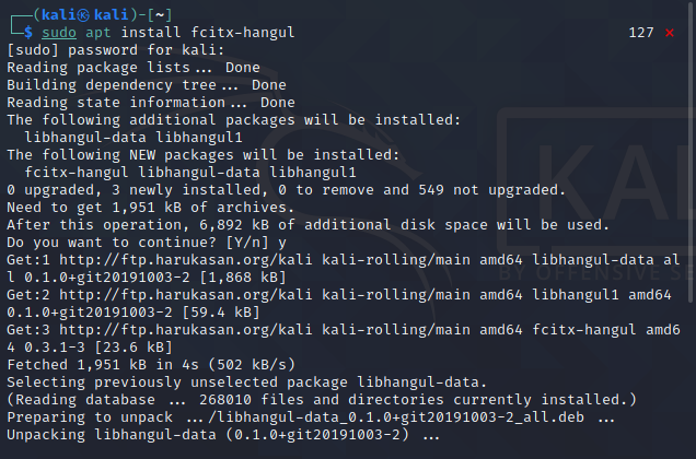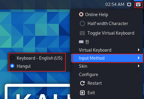 칼리 리눅스에서 한글 입력이 안될 경우 입력기에 관련된 패키지를 설치해야합니다.